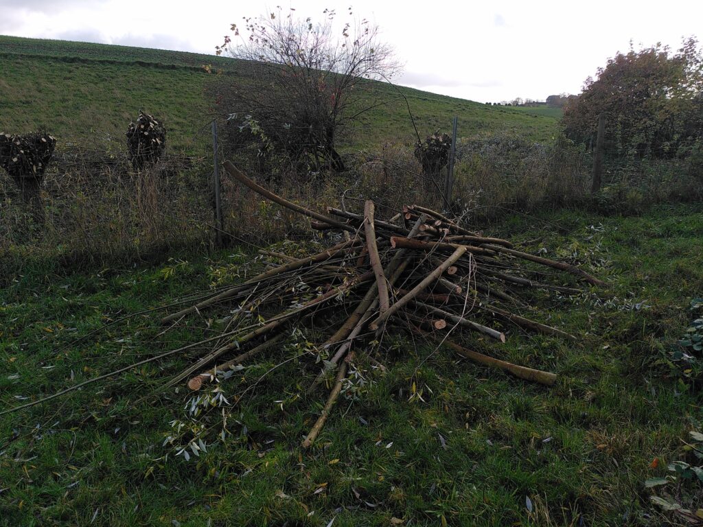 Überraschenderweise kam ich vor ein paar Wochen in den Garten und hörte Motorsägen. Schnell fand ich die Quelle: Die Stadt Heiligenhaus hatte eine Firma beauftragt, die Kopfweiden im Tal zu schneiden. Das war nach der langen Pause durch Covid auch dringend nötig, denn Kopfweiden können auseinander brechen wenn die Äster zu dick werden. Ich habe den Arbeitern erst mal eine Tasse heißen Kaffee gemacht und sie dann gefragt, was eigentlich mit dem Holt passiert 😉 Immerhin sind die Stämme gut armdick. Als ich sagte, dass wir Feuerholz brauchen, haben sie sofort angeboten, einige der Stämme zu entasten und uns in den Garten zu werfen. Weidenholz hat zwar keinen besonders hohen Brennwert, aber einem geschenkten Gaul und so weiter, ihr kennt das ja. Wir nehmen das Holz natürlich gerne und haben uns sehr bedankt. Nun ist Peter gerade dabei, die Stämme klein zu machen damit sie bis zum nächsten Herbst gut trocknen können. Aufgrund der Größe müssen wir sie noch nicht mal spalten.