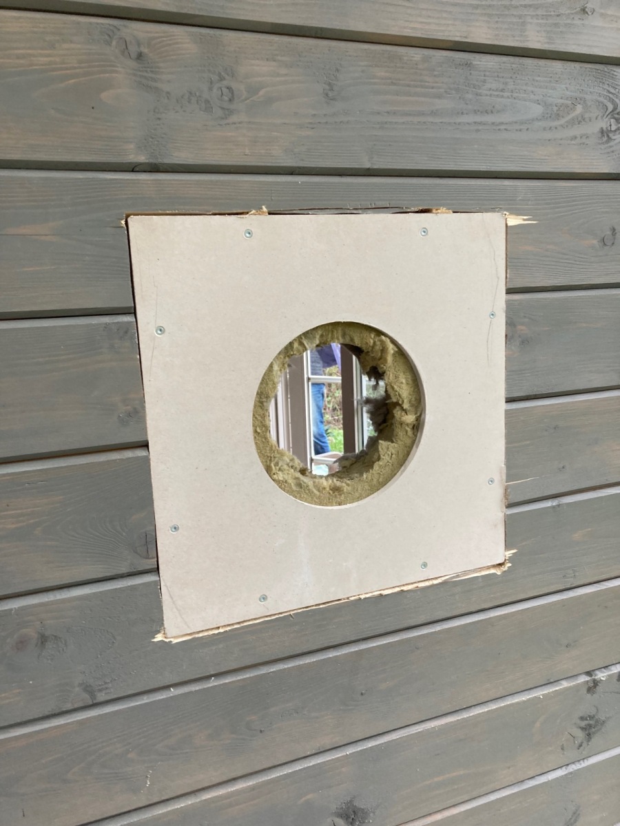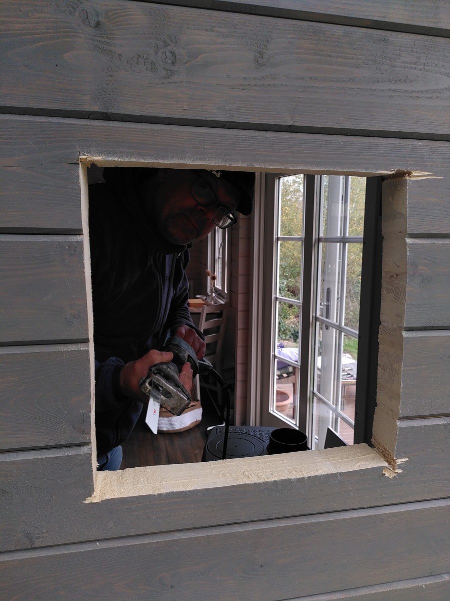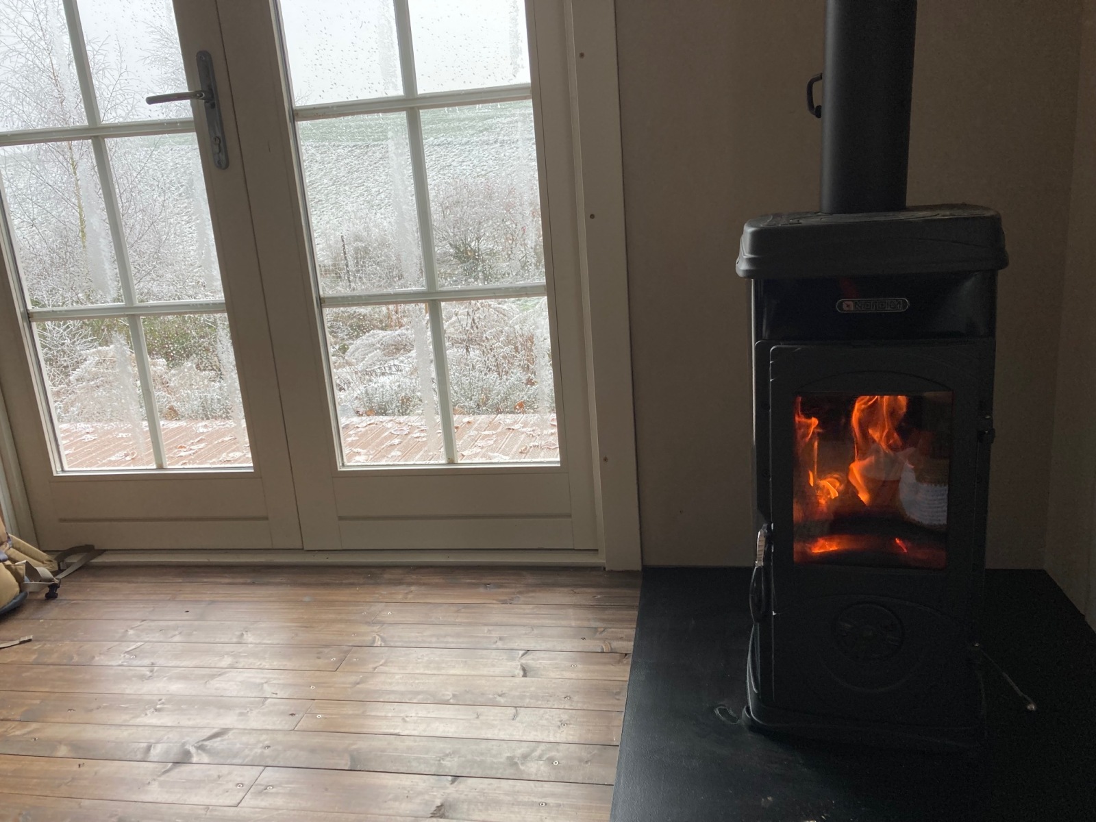 Der Ofen bzw das Zubehör dafür hatte lange auf sich warten lassen. Überall gibt es ja derzeit Lieferengpässe, so auch in diesem Bereich. Nachdem der Ofen erst mal unangeschlossen ein paar Wochen lang im Haus stand, kamen irgendwann die bestellten Ofenrohre. Nur die Halterungen dafür nicht. Also hatte Peter erst mal improvisiert bis die eigentlichen Schellen kamen. Mittlerweile sitzt alles bombenfest, nichts wird heiß, der Kamin zieht gut und das Öfchen macht das Haus einfach richtig gemütlich!