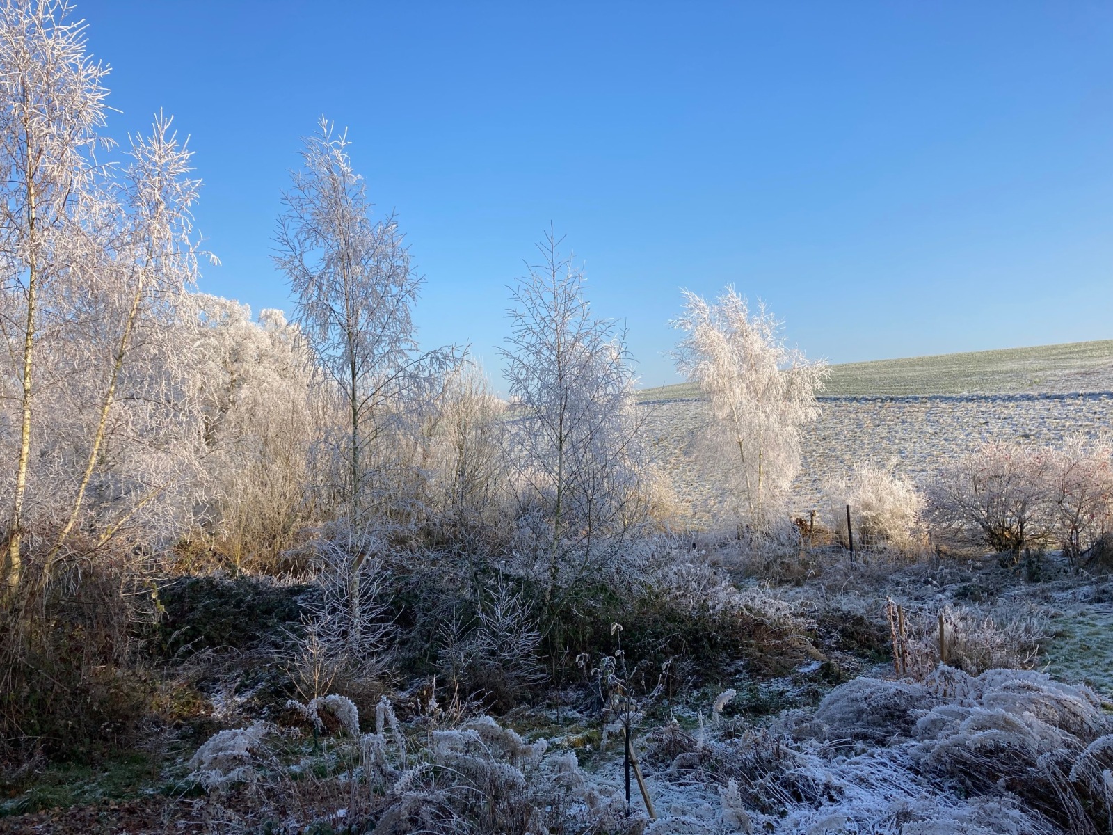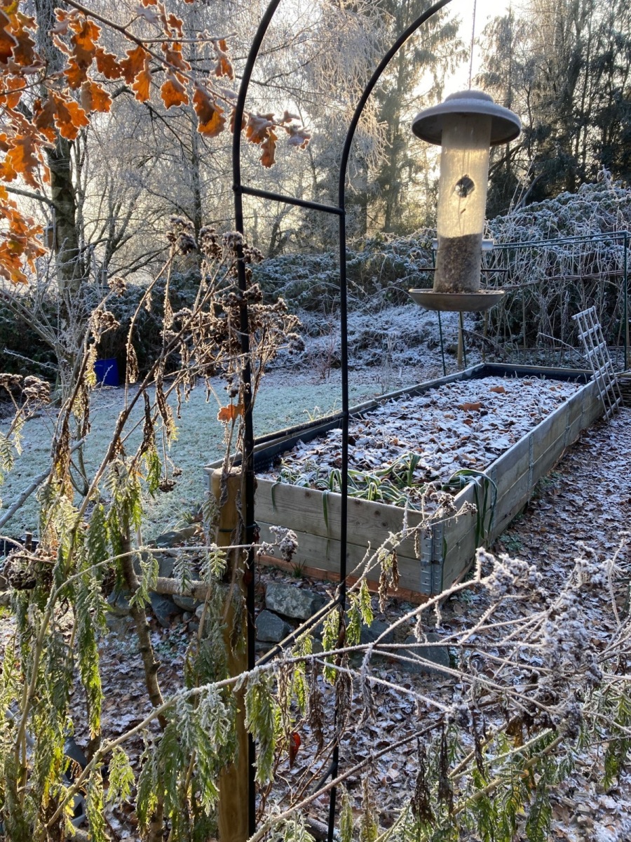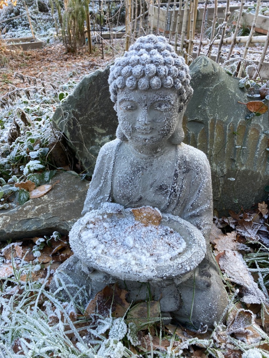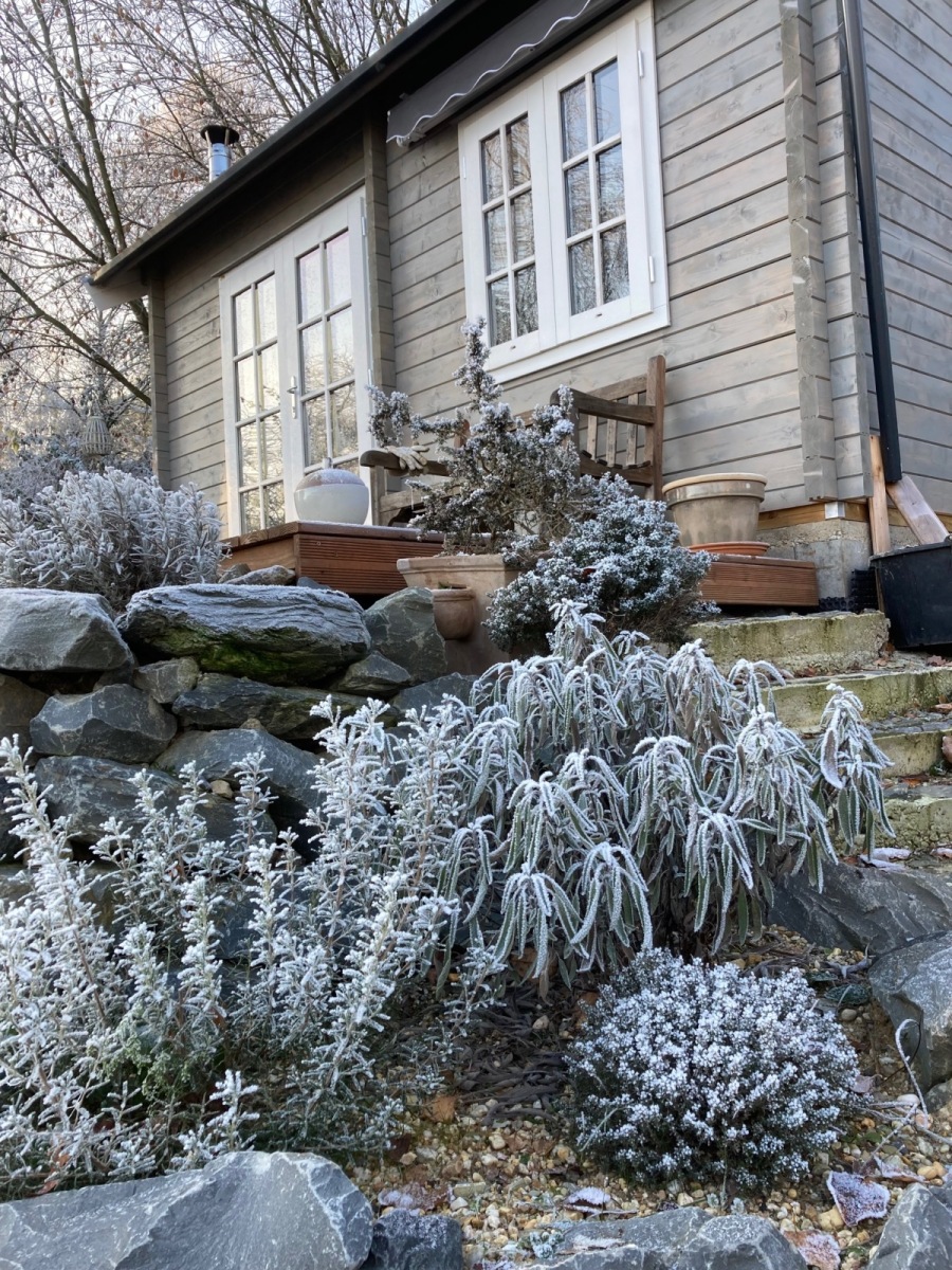 Zum Abschluss kommt hier noch eine Galerie von gestern und heute. Wie eingangs geschrieben, war es sehr kalt für hiesige Verhältnisse und es gab viel Raureif, aber auch Sonne. Ein seltenes Vergnügen, auch wenn es echt ganz schön kalt war. Wir freuen uns darauf, auch mal Schnee im Garten zu erleben, aber das ist bei uns ja wirklich sehr sehr selten.
